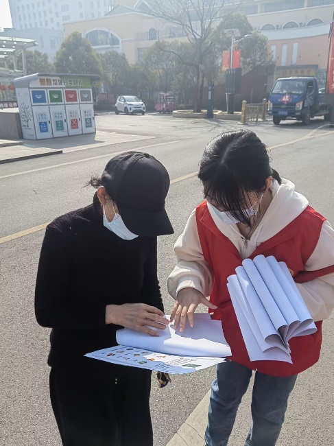志愿者们身穿红马甲,拿起长钳,在小区里的各个角落捡拾垃圾,并将捡到的垃圾进行分类装袋;有些志愿者手拿宣传单页指着一个个垃圾物品讲解,让居民掌握分类小窍门,领会垃圾分类的重要性,从而提高分类准确率,培养“绿色、低碳、环保”的理念。活动最后,志愿者们来到垃圾桶旁,将捡到的垃圾进行分类投放。